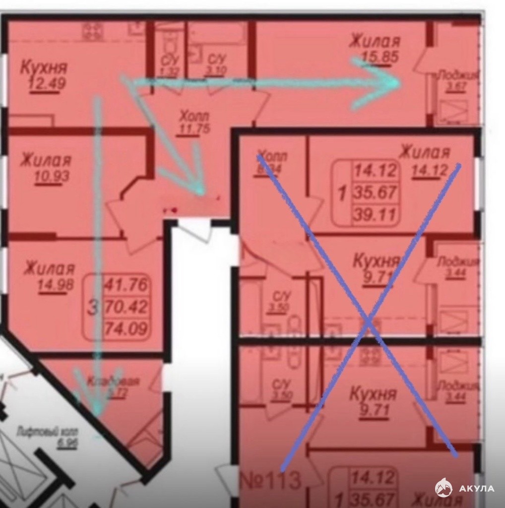 Так же из плюсов, в крыле подъезда всего две квартиры. Возможность отгородиться от общего доступа. Это принесёт дополнительное пространство.